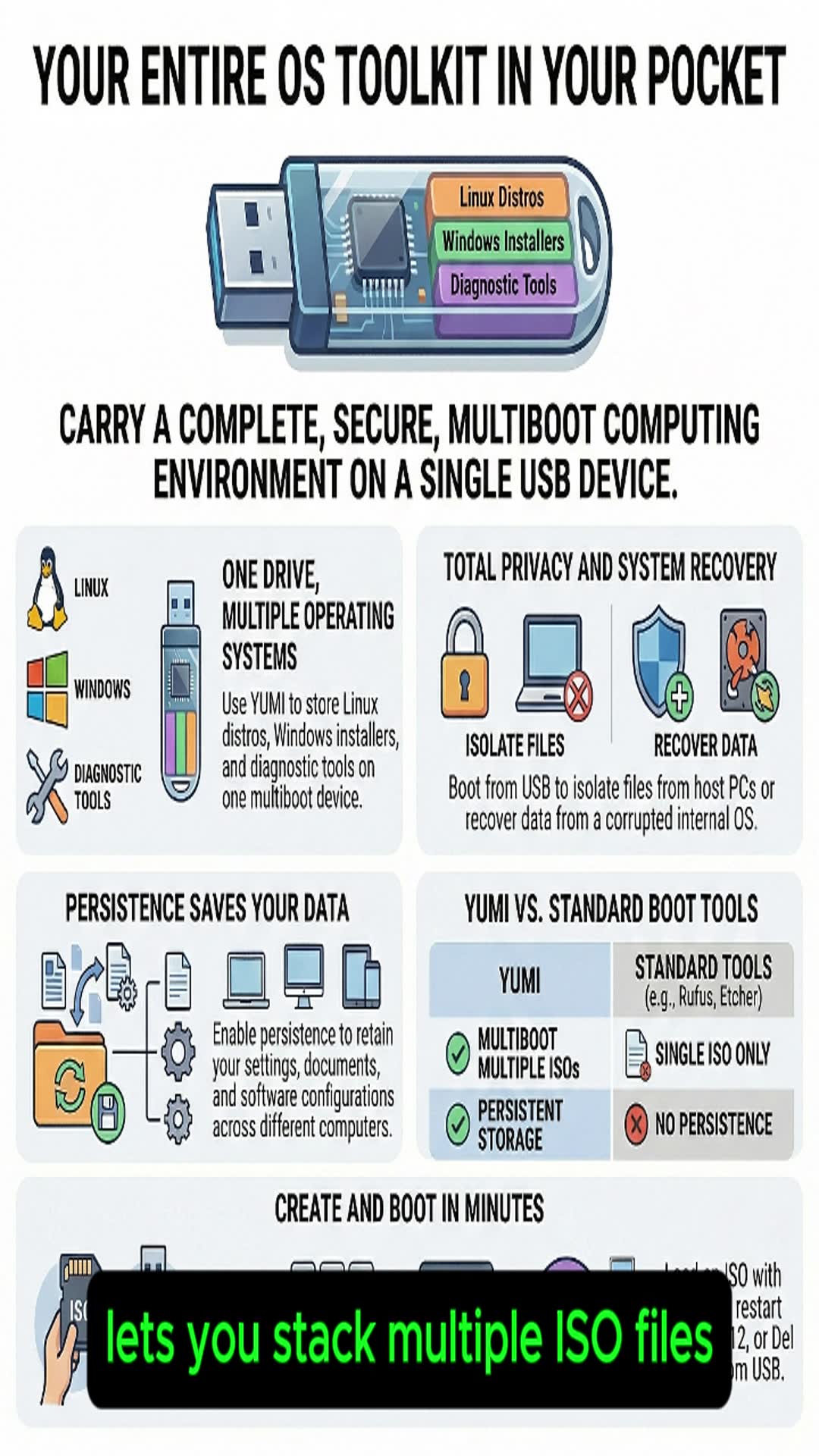 YUMI Multiboot USB boot maker. Bootable USB software for Windows or Linux. Make a multi-booting USB flash drive. Run multiple ISOs from one USB.